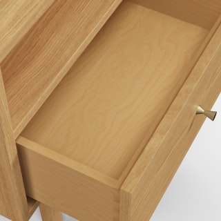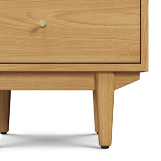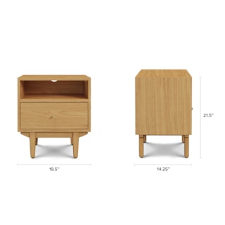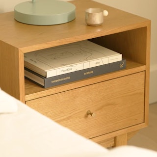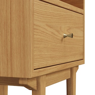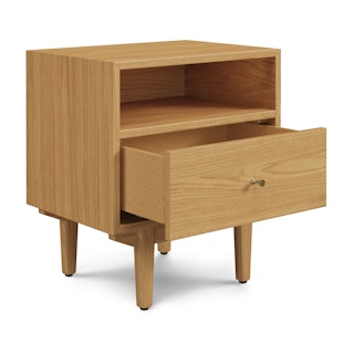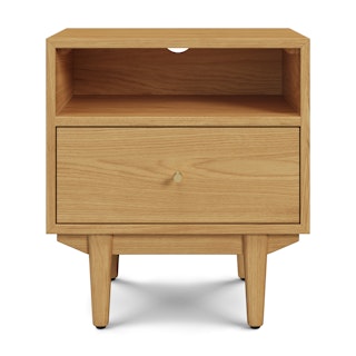An apartment-friendly nightstand, the Cooper has a small footprint but doesn't lack storage. A spacious soft-close drawer with an open shelf provides ample space, while its cable management cut-out ensures those pesky wires stay hidden. Sleep well, knowing you'll wake up to Cooper's subtle, minimal design in the morning.