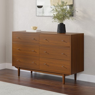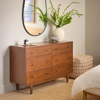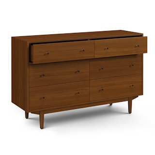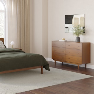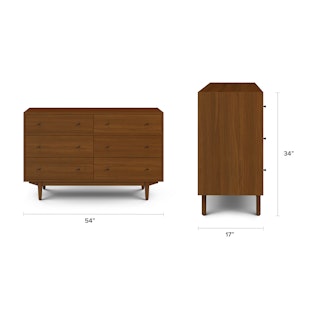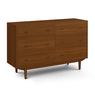 An apartment-friendly dresser, the Cooper has a small footprint but doesn't lack storage. Six spacious soft-close drawers provide ample space for anything you need to stash away. Sleep well, knowing you'll wake up to Cooper's subtle, minimal design in the morning.