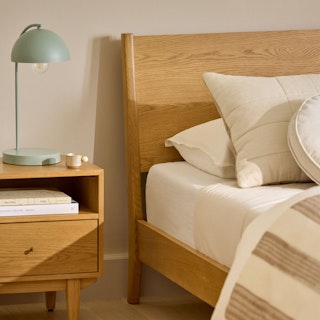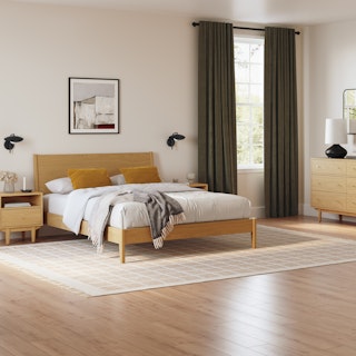 With its austere silhouette, Cooper is the option for the bedroom. A slightly slanted backrest provides the perfect angle for those pre-sleep reading sessions, while its slim, low-profile frame keeps its aesthetics feeling low and grounded. Sleep well, knowing you'll wake up to Cooper's subtle, minimal design in the morning.