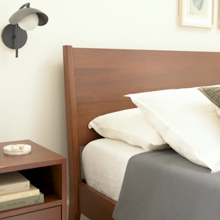 With its austere silhouette, Cooper is the option for the bedroom. A slightly slanted backrest provides the perfect angle for those pre-sleep reading sessions, while its slim, low-profile frame keeps its aesthetics feeling low and grounded. Sleep well, knowing you'll wake up to Cooper's subtle, minimal design in the morning.