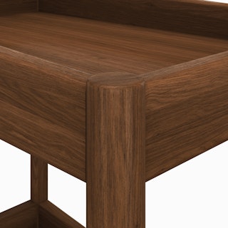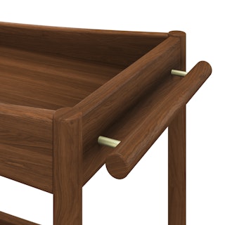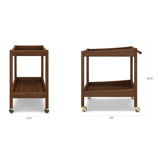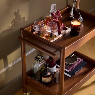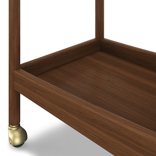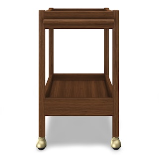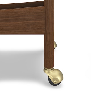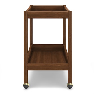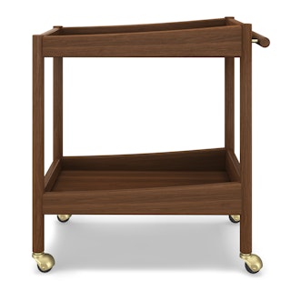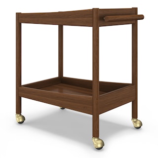 If you’ve ever dreamed of looking worldly, smart, or even a little stern, let us introduce you to the Cotu Bar Cart. Made of solid and veneered American black walnut, the Cotu bar cart features two generously sized serving platforms finished off with subtle brass hardware and a floating handle. This mid-century bar-on-wheels is ready to spice up your next soirée.