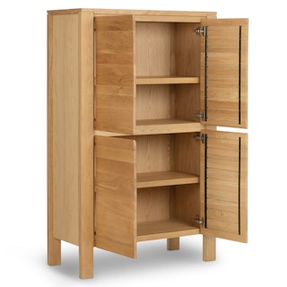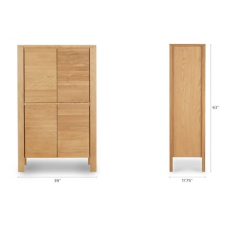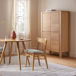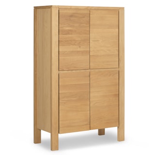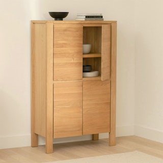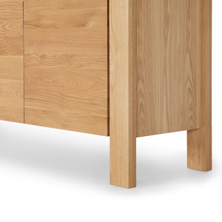 Not one to be shy, our Dako Cabinet shows off with subtle cut-outs at its connecting corners. Made of solid and veneered oak, this cabinet may be minimal but its chunky legs serve as solid building blocks for a modern statement piece. Complete with internal shelving, the Dako stashes the goods on the inside to keep your space looking nothing short of polished on the outside.