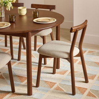The Dine and Unwind Bundle embodies all the light and airy qualities of the Scandi design style. The Ulka chair features a curved backrest that seamlessly integrates with the rounded-edge frame of the Heidi table, making the desire to remain at the table strong — even well past dinner's end. Made from solid and veneered wood, this bundle reflects a minimal, soft, and compact aesthetic, effortlessly embracing its Scandinavian roots.