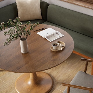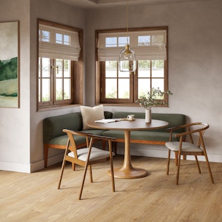 This word gets thrown around a lot these days, but in this case, "iconic" is appropriate. The Cozy Corner Bundle features our Hendrick table, which showcases the signature swoops of the Atomic "Tulip" design, now updated with contemporary wood finishes. Paired with the strong, solid Munk chair, this bundle is distinguished by a round tuffet featuring velvet and foam filling. A slightly curved backrest makes it restful to relax at the Hendrick table of the Cozy Corner Bundle.