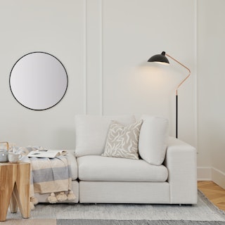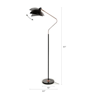 The crescent-shaped metal shade and sharply curved stand draw inspiration from an iconic mid-century design. Leap has an easily adjustable shade that directs light exactly where you want it, perfect for a home office or reading nook. Its stylish finishes combine matte and polished metal, adding new life to the classic design.