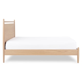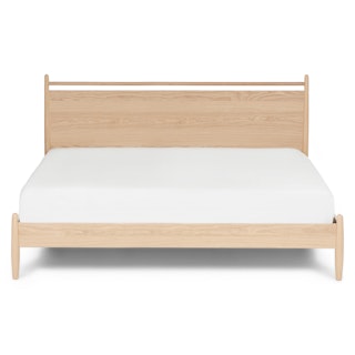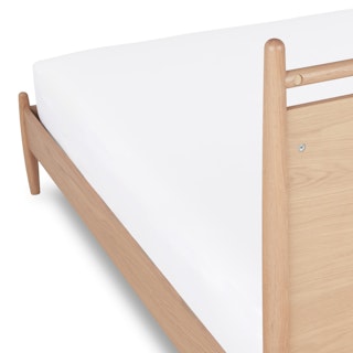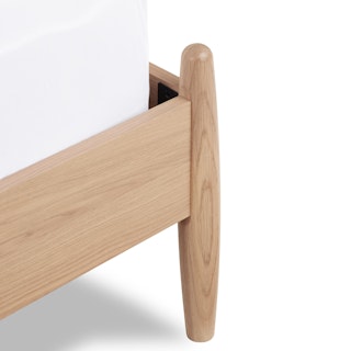 Simple pleasures. The Lenia bed takes notes from the Shaker school of design: tapered legs, solid and veneered white oak, panel headboard, concealed joinery, and an unadorned silhouette. The Lenia’s quiet beauty will take center stage in your bedroom. Sweet dreams.