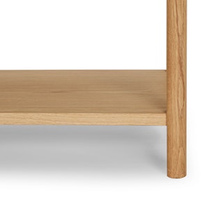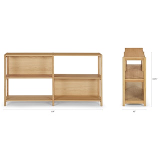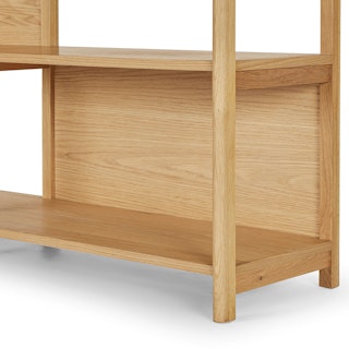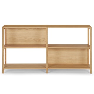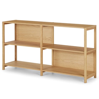 Panelled beauty. The elegance of the Mysen bookcase lies in its simple, open design. Two oak veneer back panels built atop a solid oak frame provide a show-worthy foundation for any object to take center stage.