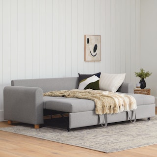 And what a coincidence, this sofa is also a bed. Perfect for impromptu sleepovers and movie marathons alike, the Nordby base slides out and lifts into a snug, subtle sofa bed.