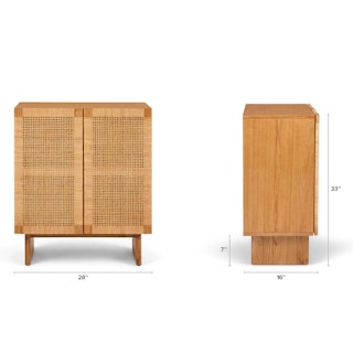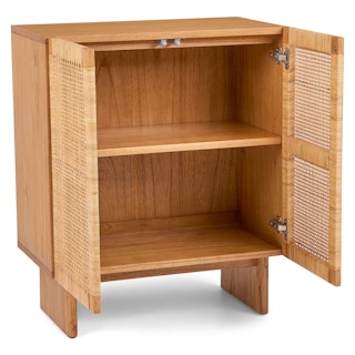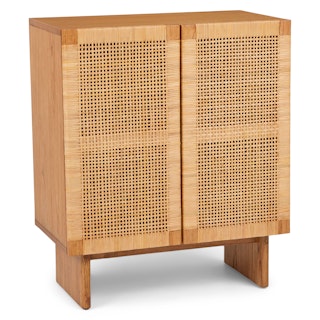 The island breeze of cabinets, the Noyko brings an air of vacation straight to your living room. Use it as a bar to store all your drink fixings or to declutter your space and reward yourself with a piña colada after. With those natural cane rattan doors, it's hard not to be inspired.