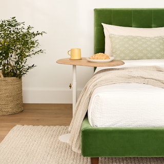 This side table is sleek, solid, and just the right height for a floor-touching couch. It doesn’t take up visual space but adds a nice sculptural touch. Big eno...  More