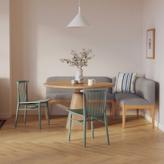 Be aware that this collection will be the place everyone wants to hang out — they may never leave. Featuring a corner and armless piece, the Rosin bundle sports solid wood legs and dense foam seats wrapped in a stain-repellent cover, capable of tackling whatever spills come its way. From the morning breakfast rush to a late-night soirée, the Rosin bundle is a breakfast nook dream ready to take on the day.