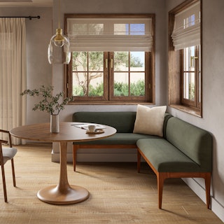 Your breakfast nook is in for a major upgrade. With solid wood legs, base, and densely packed foam seats wrapped in a stain repellent cover, the Rosin banquette is also — wait for it! — modular. What if your breakfast nook became... a breakfast wall... think about it.