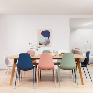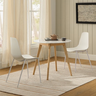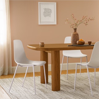 Minimalism made easy. Combining the light, natural palette of our Seno Round Dining Table with the Svelti Dining Chairs, this Scandi-inspired bundle brings a real breath-of-fresh-air kind of design aesthetic to any lived space.