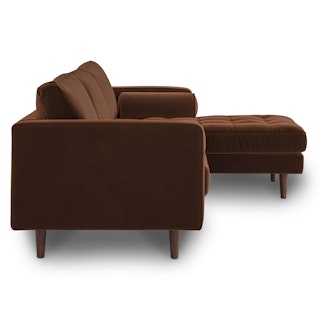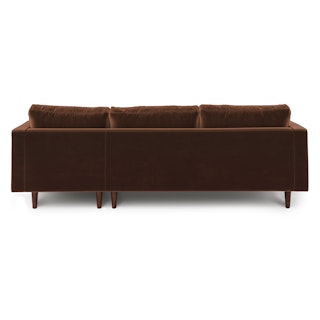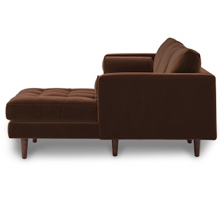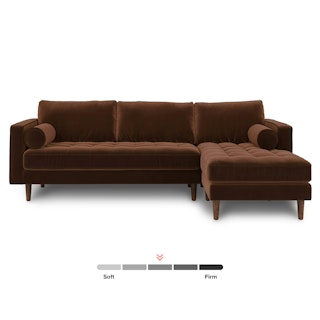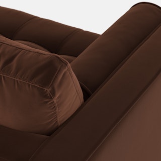 How does a person balance extravagance and practicality? With a velvet sectional sofa, obviously. With lux brushed velvet, loose back cushions and bolsters, and solid wood legs, there’s a reason this is our most popular sofa. A corner blocked wooden frame and slim walnut legs make for a sturdy and stylish movie-watching companion — pair with a smattering of tropical plants and coffee in a pretty mug.