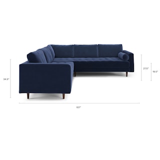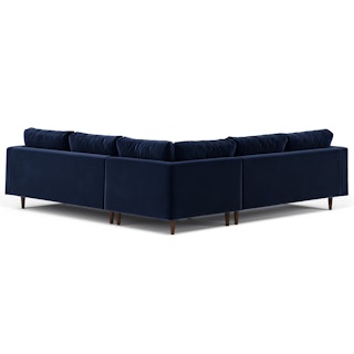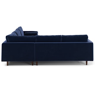 How does a person balance extravagance and practicality? With a velvet sectional sofa, obviously. With lux brushed velvet, loose back cushions and bolsters, and solid wood legs, there’s a reason this is our most popular sofa. A corner blocked wooden frame and slim walnut legs make for a sturdy and stylish movie-watching companion — pair with a smattering of tropical plants and coffee in a pretty mug.