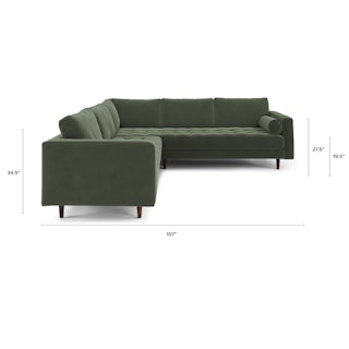 Sven 107" Tufted Velvet Corner Sectional - Plush Pacific Green