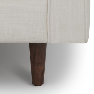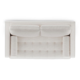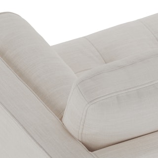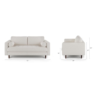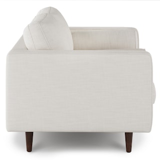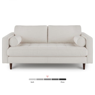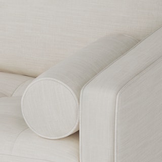 Our most popular sofa, reimagined for apartment living. This modern take on a mid-century classic features clean lines, a tufted bench seat, and luxuriously stuffed back cushions. Two matching round bolsters complete the look.