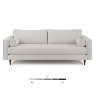 There’s a reason this is our most popular sofa. This modern take on a mid-century classic features crisp lines, a tufted benchseat, and two luxuriously stuffed back cushions. Two matching round bolsters complete the look.