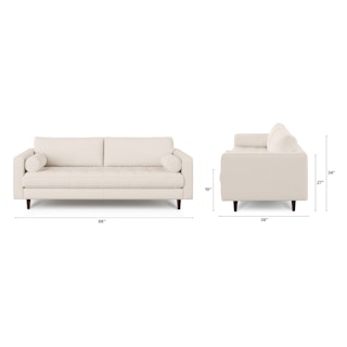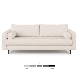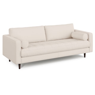 There’s a reason this is our most popular sofa. This modern take on a mid-century classic features crisp lines, a tufted benchseat, and two luxuriously stuffed back cushions. Two matching round bolsters complete the look.