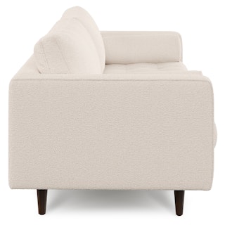 Upholstered in a soft, non-absorptive bouclé fabric, bouclé is an excellent choice for those who want an easy-to-care-for, style-forward sofa