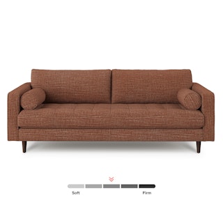 There’s a reason this is our most popular sofa. This modern take on a mid-century classic features crisp lines, a tufted benchseat, and two luxuriously stuffed back cushions. Two matching round bolsters complete the look.
