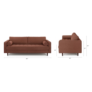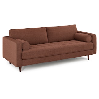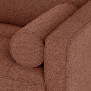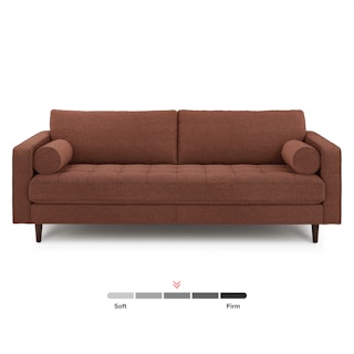 There’s a reason this is our most popular sofa. This modern take on a mid-century classic features crisp lines, a tufted benchseat, and two luxuriously stuffed back cushions. Two matching round bolsters complete the look.