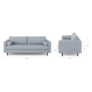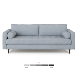 There’s a reason this is our most popular sofa. This modern take on a mid-century classic features crisp lines, a tufted benchseat, and two luxuriously stuffed back cushions. Two matching round bolsters complete the look.