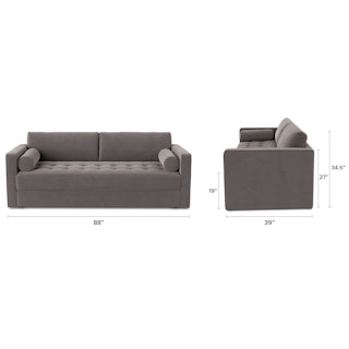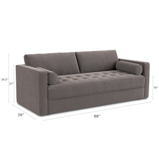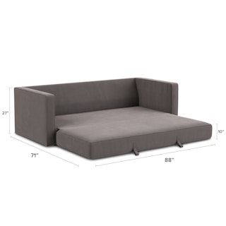 Ever looked at our best-selling Sven and thought “Huh, this thing looks so comfy, I wish they made a Sofa Bed version”. Well, dream no longer. The Sven Sofa Bed is here to make all your slumber-themed dreams come true. The Sven Sofa Bed is Indistinguishable from the rest of the collection, with its signature tufted bench seat, overstuffed cushions, and round bolsters still present. But now, simply grab the two pulls on the backside of the seat cushion and unfold the mattress for a seamless transition—Classy timeless couch to snoozeland in seconds, what's not to love?