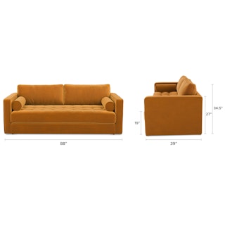 Ever looked at our best-selling Sven and thought “Huh, this thing looks so comfy, I wish they made a Sofa Bed version”. Well, dream no longer. The Sven Sofa Bed is here to make all your slumber-themed dreams come true. The Sven Sofa Bed is Indistinguishable from the rest of the collection, with its signature tufted bench seat, overstuffed cushions, and round bolsters still present. But now, simply grab the two pulls on the backside of the seat cushion and unfold the mattress for a seamless transition—Classy timeless couch to snoozeland in seconds, what's not to love?