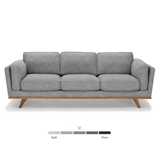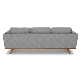 Picture this: you’re rolling out of bed. Your partner has returned from the cafe with lattes in hand. You sit on your light gray sofa — no one spills. It’s a perfect Saturday morning. The Timber pebble gray sofa is built on kiln dried solid wood frame, features loose seat and side cushions, and is set atop a honey oak base.